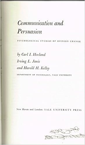 Communication and Persuasion Psychological Studies of opinion Change by Hovland. Communication and Persuasion von Carl I. Der Band Communication and Persuasion dokumentiert zentrale Befunde von Studien die in den 1940er und 1950er Jahren im Rahmen des Yale Communication and Attitude Change Program von einer Forschergruppe um Carl Iver Hovland durchgeführt wurden. Janis and Harold H.